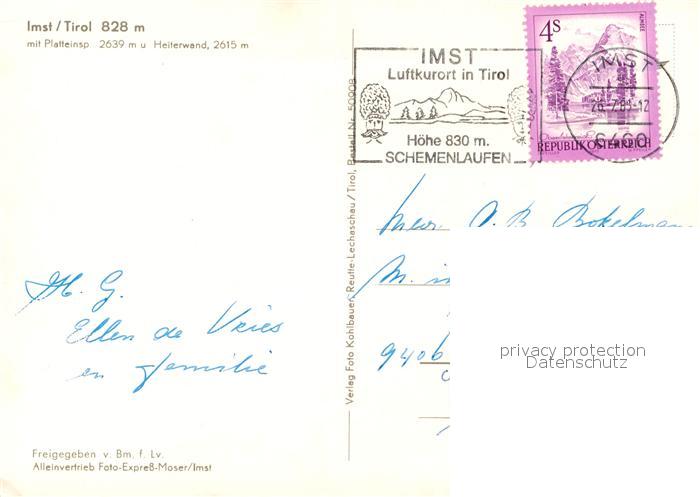 73588364 alte Postkarte Imst Tirol Fliegeraufnahme mit Platteinspitze und Heiterwand postalisch gelaufen Erhaltung siehe scans [WerneD78] KatCode: 11390334070203