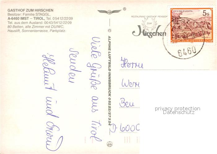 12943391 alte Postkarte Imst Tirol Gasthof Zum Hirschen postalisch gelaufen Erhaltung siehe scans [NatalD47] KatCode: 11390334070203