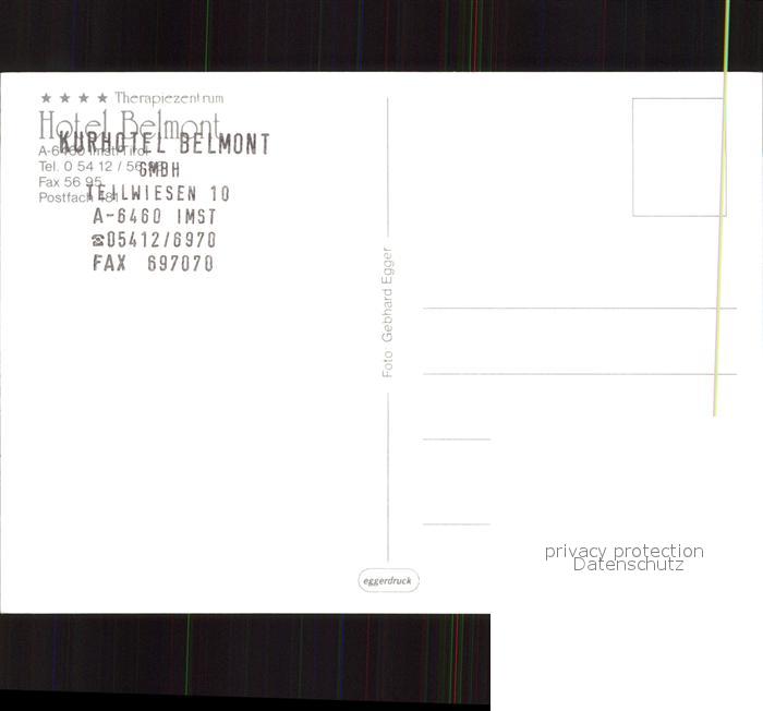 71985104 Imst Tirol Hotel Belmont Therapiezentrum postalisch nicht gelaufen Erhaltung siehe scans KatCode: 11390334070203