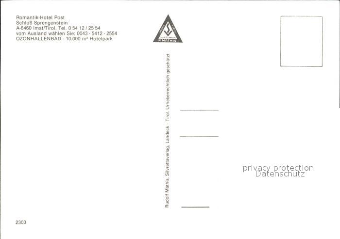 72286006 Imst Tirol Hotel Restaurant Post Hallenbad Hotelpark Schloss Sprengenstein KatCode 11390334070203