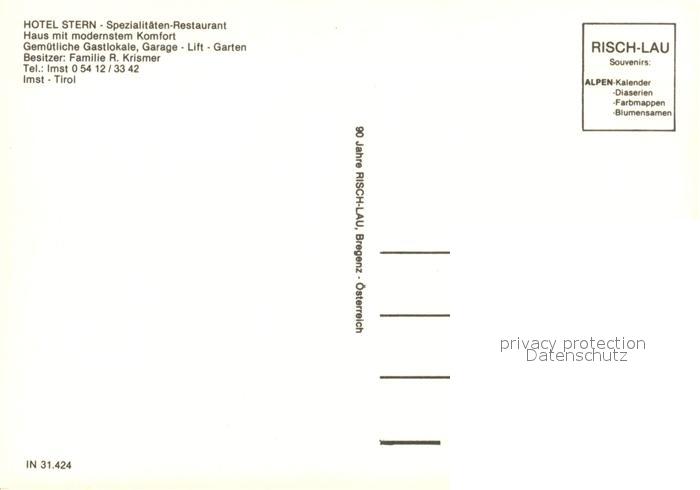 73515145 Imst Tirol Hotel Stern Garten postalisch nicht gelaufen Erhaltung siehe scans [WerneD78] KatCode: 11390334070203