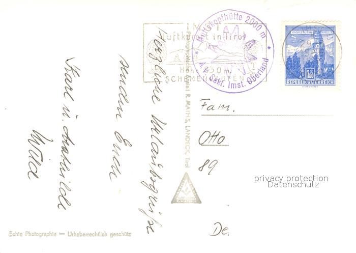 73325105 Imst Tirol Muttekopfhuette Hintere Plattenspitze postalisch nicht gelaufen Erhaltung siehe scans [FriedD77] KatCode: 11390334070203
