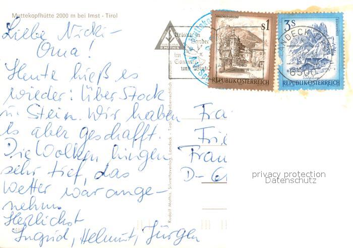 73649422 alte Postkarte Imst Tirol Muttekopfhuette Wasserfall postalisch gelaufen Erhaltung siehe scans [WerneD78] KatCode: 11390334070203