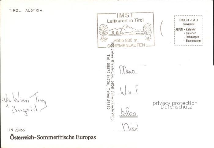 72099070 alte Postkarte Imst Tirol Panorama Orts und Teilansichten Kirche See Latschenhuette Musikgruppe postalisch gelaufen Erhaltung siehe scans KatCode: 11390334070203