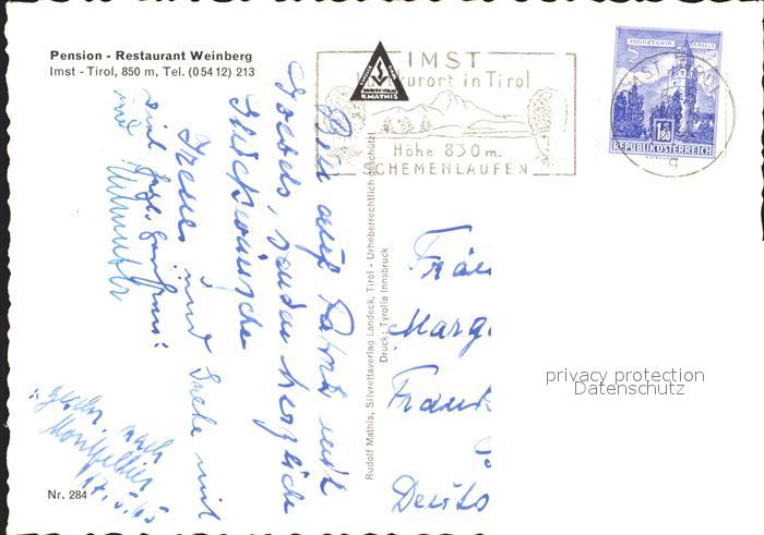 72071843 alte Postkarte Imst Tirol Pension Restaurant Weinberg postalisch gelaufen KatCode: 11390334070203