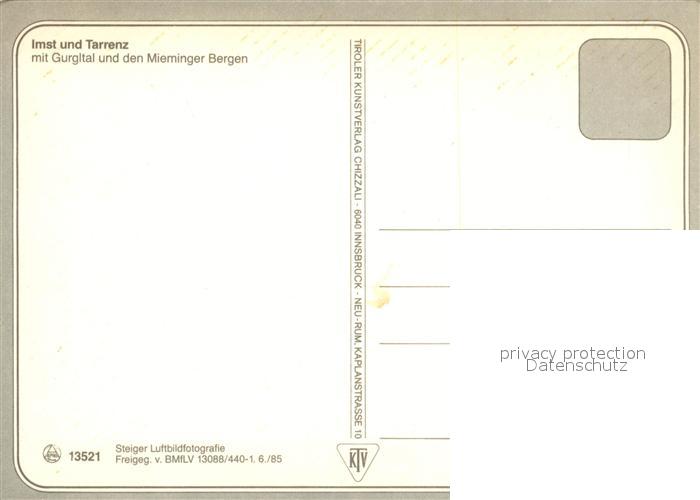 73363390 Imst Tirol und Tarrenz mit Gurgltal Mieminger Berge Fliegeraufnahme postalisch nicht gelaufen Erhaltung siehe scans [FriedD77] KatCode: 11390334070203