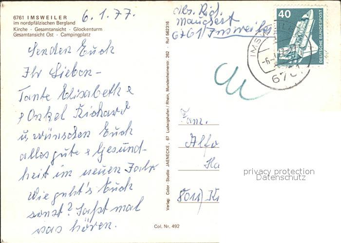 72140407 alte Postkarte Imsweiler Kirche Gesamtansicht Glockenturm Campingplatz postalisch gelaufen Erhaltung siehe scans KatCode: 11110007333034