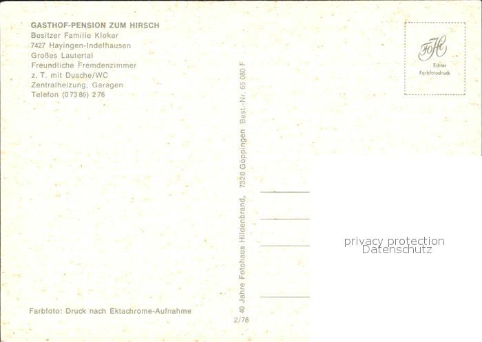 72426118 Indelhausen Gasthof Pension zum Hirsch Kirche postalisch nicht gelaufen Erhaltung siehe scans KatCode: 11110008415034