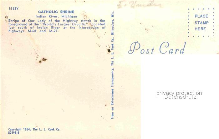 72907186 Indian River Catholic Shrine postalisch nicht gelaufen Erhaltung siehe scans [NatalD47] KatCode: 14140240000000