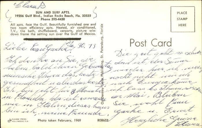 71451508 Indian Rocks Beach Sun and Surf Apartments postalisch nicht gelaufen Erhaltung siehe scans KatCode: 14140110000000