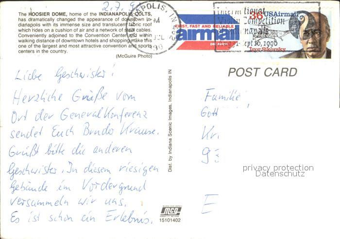 72331984 old postcard Indianapolis Hoosier Dome postalisch gelaufen Erhaltung siehe scans KatCode: 14140160000000