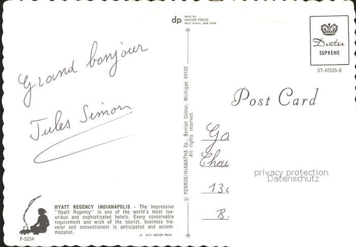 72127625 Indianapolis Hyatt Regency postalisch nicht gelaufen Erhaltung siehe scans KatCode: 14140160000000