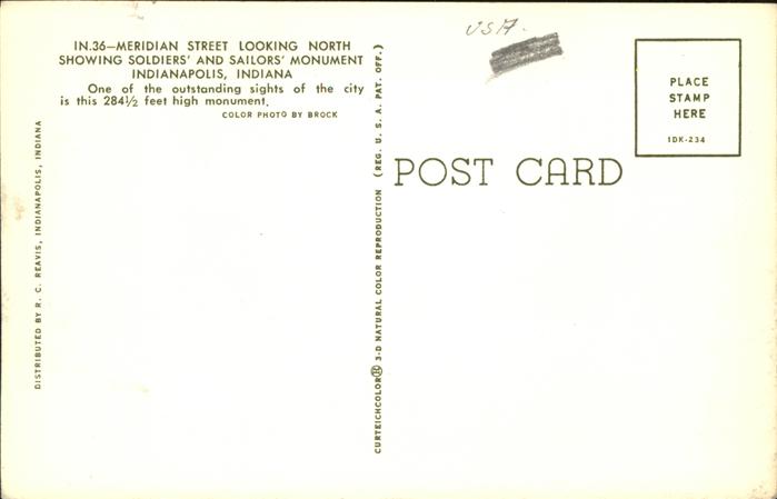 11491502 Indianapolis Meridian Street Soldiers and Sailors Monument postalisch nicht gelaufen Erhaltung siehe scans KatCode: 14140160000000