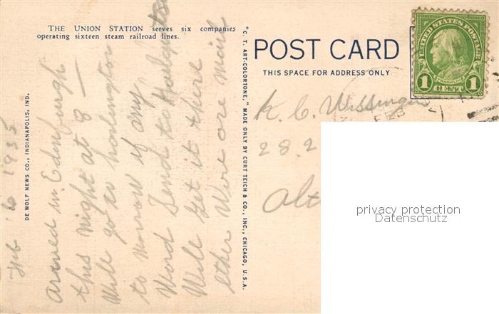 13322754 old postcard Indianapolis Union Station postalisch gelaufen Erhaltung siehe scans [KathaD81] KatCode: 14140160000000