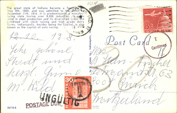 11491767 old postcard Indianapolis — postalisch gelaufen Erhaltung siehe scans KatCode: 14140160000000