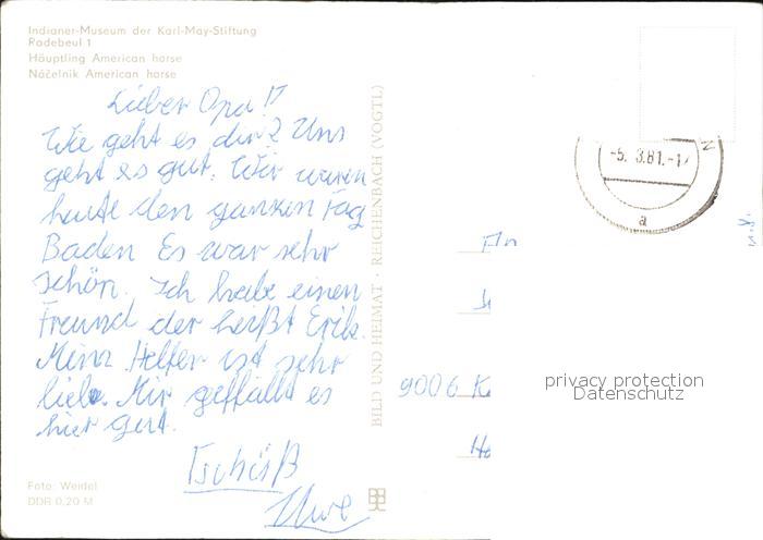Indianer Native American Haeuptling American Horse Museum Karl-May-Stiftung Radebeul postalisch nicht gelaufen Erhaltung siehe scans