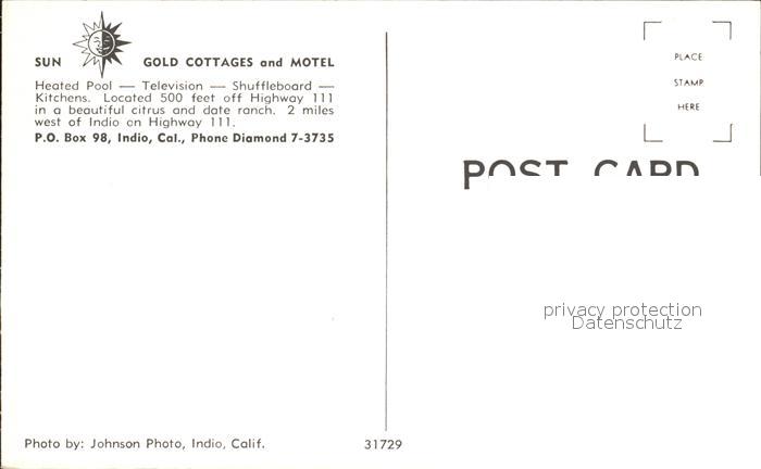 72291530 Indio Gold Cottages Motel postalisch nicht gelaufen Erhaltung siehe scans KatCode: 14140050000000