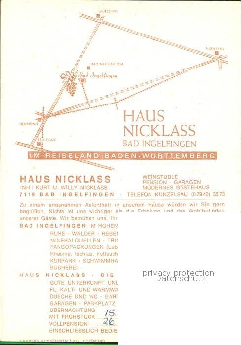 72026749 Ingelfingen Haus Nicklass Weinstueble postalisch nicht gelaufen Werbekarte (keine Postkarte) Erhaltung siehe scans KatCode: 11110008126039