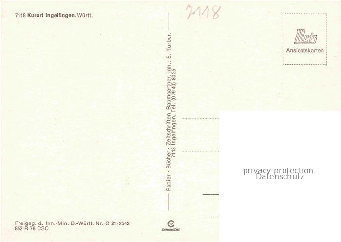 74054843 Ingelfingen Panorama Kurort postalisch nicht gelaufen Fliegeraufnahme Erhaltung siehe scans [FriedD77] KatCode: 11110008126039