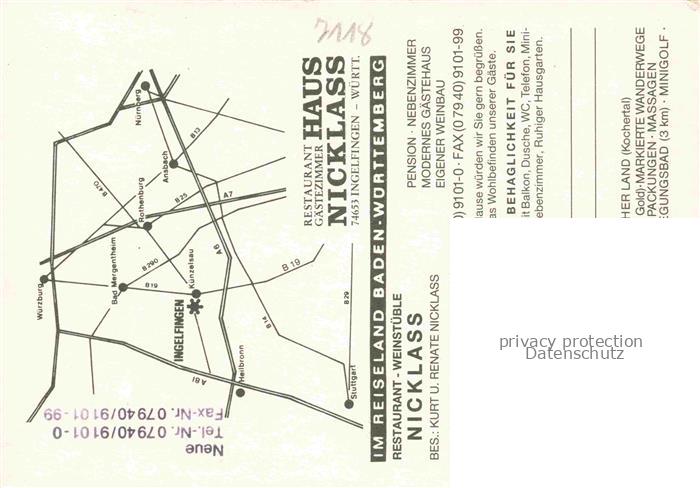 74054834 Ingelfingen Restaurant Weinstueble Haus Nicklass Garten postalisch nicht gelaufen Werbekarte (keine Postkarte) Erhaltung siehe scans [FriedD77] KatCode: 11110008126039