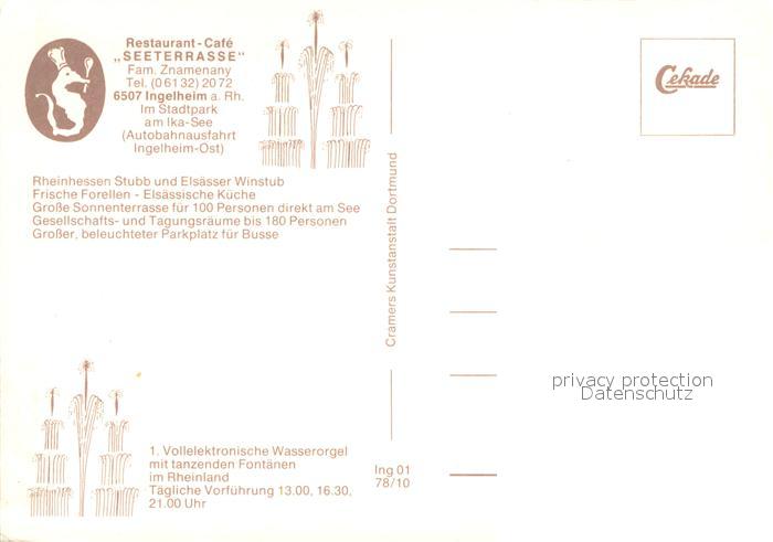 73653998 Ingelheim Rhein Restaurant Cafe Seeterrasse Gastraeume Schwanenteich postalisch nicht gelaufen Erhaltung siehe scans [WerneD78] KatCode: 11110007339030