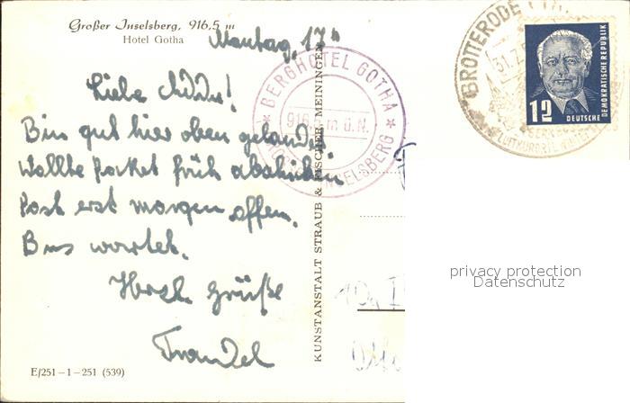 72361046 alte Postkarte Ingelsberg Grosser Ingelsberg Hotel Gotha postalisch gelaufen Erhaltung siehe scans KatCode: 11110009175139