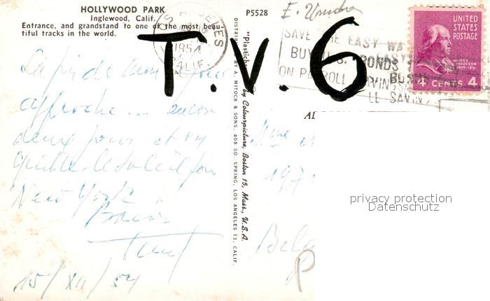 73071845 old postcard Inglewood Hollywood Park postalisch gelaufen Erhaltung siehe scans [FriedD77] KatCode: 14140050000000