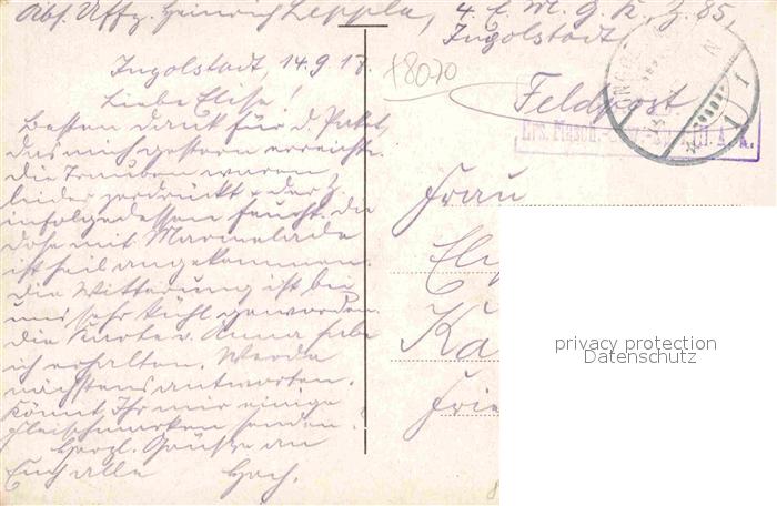 42688296 alte Postkarte INGOLSTADT CITY Altes Schloss Kuenstlerkarte postalisch gelaufen Feldpost Erhaltung siehe scans [LiesaD40] KatCode: 11110009161000
