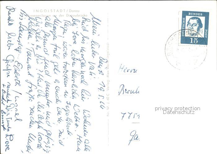 72083097 alte Postkarte INGOLSTADT CITY Blumenanlagen an der Donaubruecke postalisch gelaufen Erhaltung siehe scans KatCode: 11110009161000