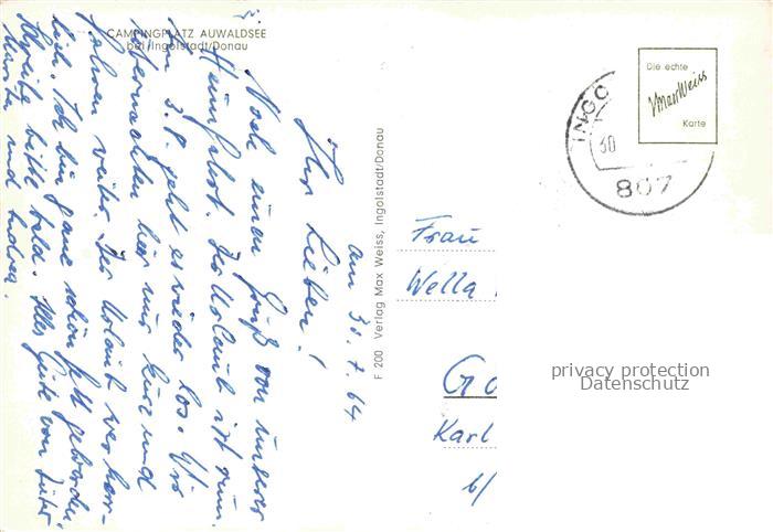 74096068 INGOLSTADT CITY Campingplatz Auwaldsee Strandpartie postalisch gelaufen Erhaltung siehe scans [WerneD78] alte Postkarte Wern Katcode 11110009161000