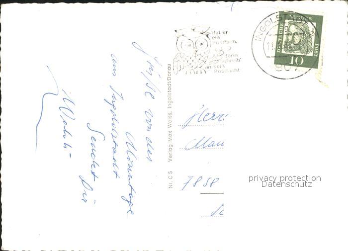 71935275 alte Postkarte INGOLSTADT CITY Donaubruecke Schloss Blumenanlagen an der Donau postalisch gelaufen Erhaltung siehe scans KatCode: 11110009161000