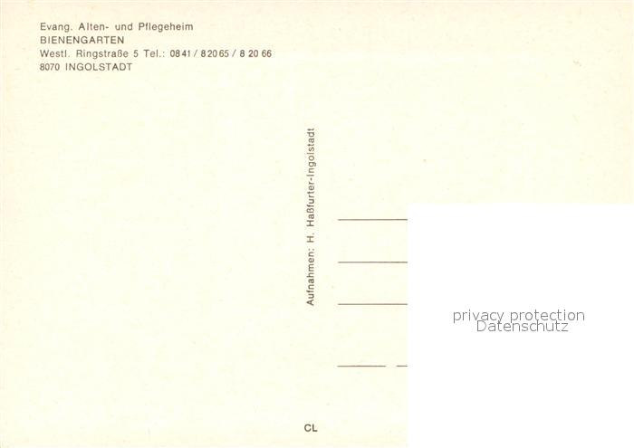 73745381 INGOLSTADT CITY Ev Alten und Pflegeheim Bienengarten Gast und Veranstaltungsraum Gymnastikhalle postalisch nicht gelaufen Erhaltung siehe scans [WerneD78] Wern Katcode 11110009161000