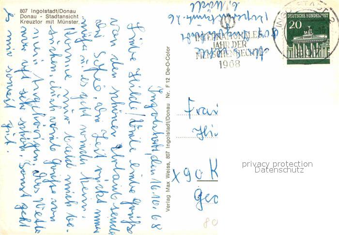 72775026 alte Postkarte INGOLSTADT CITY Kreuztor Muenster postalisch gelaufen Erhaltung siehe scans [NatalD47] KatCode: 11110009161000