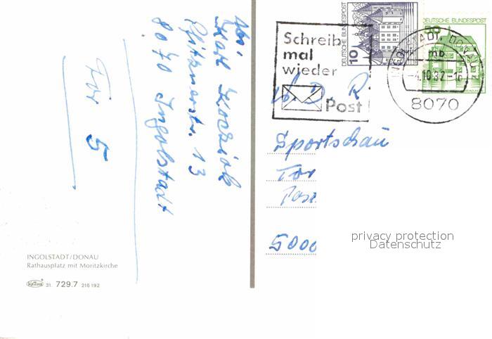 72764189 alte Postkarte INGOLSTADT CITY Rathausplatz Moritzkirche postalisch gelaufen Erhaltung siehe scans [NatalD47] KatCode: 11110009161000