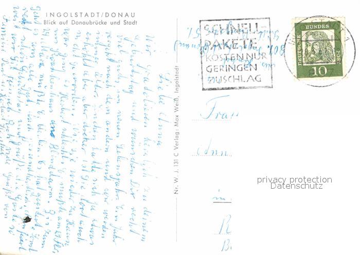 72855580 alte Postkarte Ingolstadt Donau Donaubruecke postalisch gelaufen Erhaltung siehe scans [LiesaD40] KatCode: 11110009161000