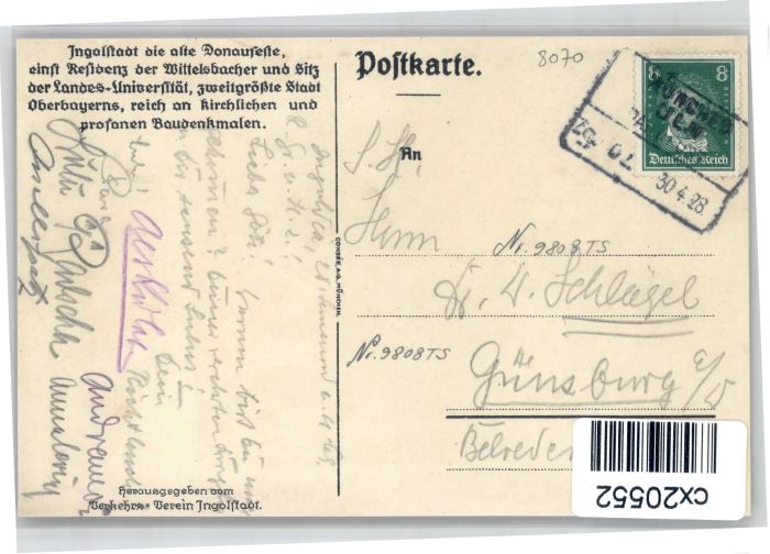 30739650 alte Postkarte Ingolstadt Donau Ingolstadt postalisch gelaufen KatCode: 11110009161000