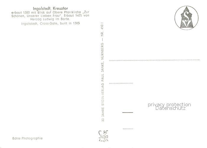 73626716 Ingolstadt Donau Kreuztor postalisch nicht gelaufen Erhaltung siehe scans [LiesaD40] KatCode: 11110009161000