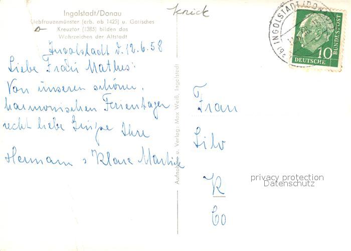 72941500 alte Postkarte Ingolstadt Donau Liebfrauenmuenster postalisch gelaufen Erhaltung siehe scans [PaolaD17] KatCode: 11110009161000