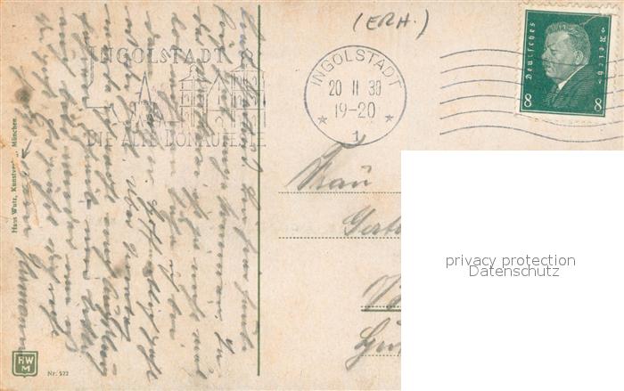 33610172 alte Postkarte Ingolstadt Donau Partie an der Donau mit Donaubruecke postalisch gelaufen Erhaltung siehe scans [FriedD77] KatCode: 11110009161000