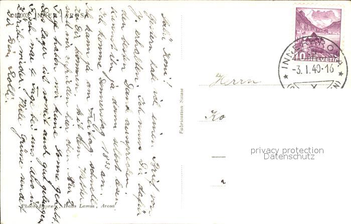 12029742 alte Postkarte Inner Arosa Dorfpartie Wintersportplatz Alpen postalisch gelaufen Erhaltung siehe scans KatCode: 11470100345298