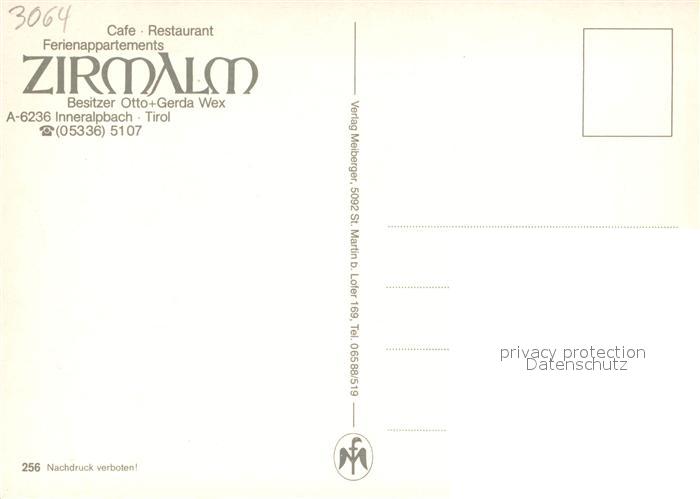 73209822 Inneralpbach Cafe Restaurant Ferienappartements Zirmalm postalisch nicht gelaufen Erhaltung siehe scans [FriedD77] KatCode: 11390335070501