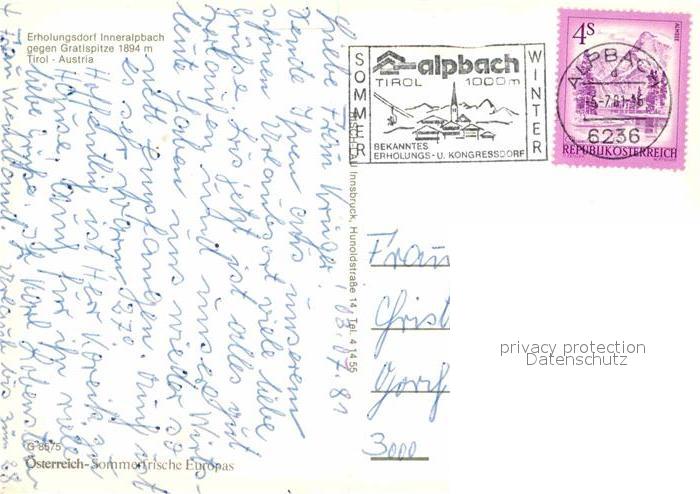 72871307 alte Postkarte Inneralpbach gegen Gratisspitze postalisch gelaufen Erhaltung siehe scans [LiesaD40] KatCode: 11390335070501