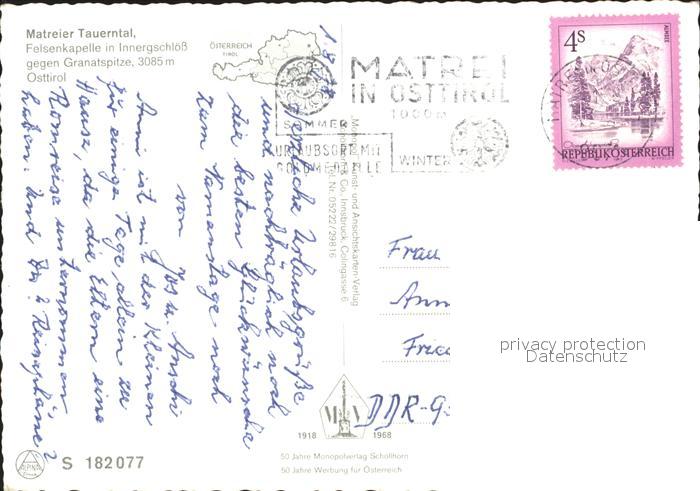 72375461 alte Postkarte Innergschloess Felsenkapelle Almsiedlung Tauerntal Granatspitze postalisch gelaufen Erhaltung siehe scans KatCode: 11390333070717