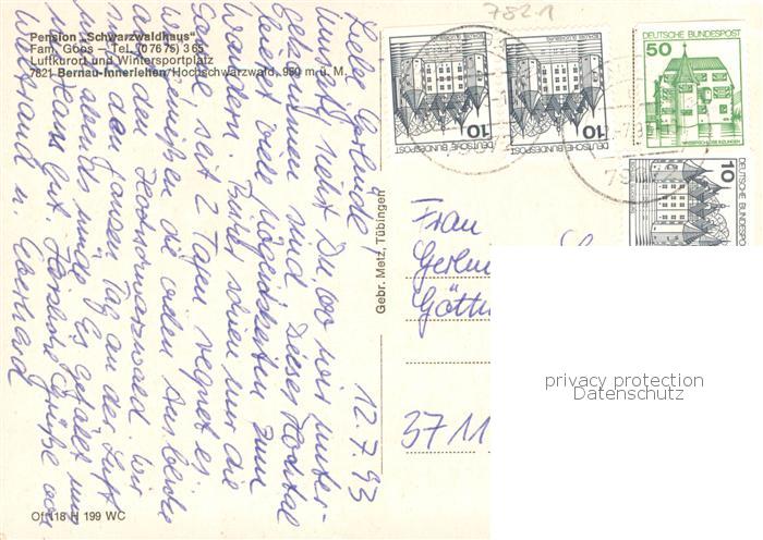 73759926 alte Postkarte Innerlehen Pension Schwarzwaldhaus postalisch gelaufen Erhaltung siehe scans [FriedD77] KatCode: 11110008337013