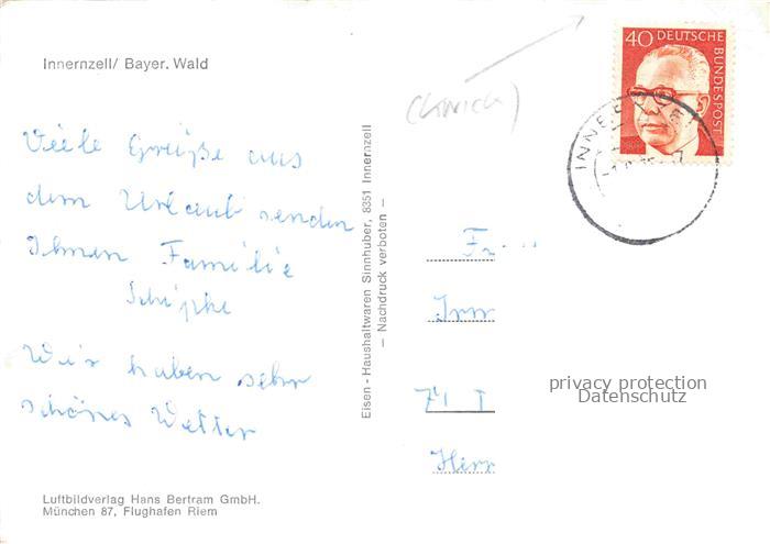 74092339 alte Postkarte Innernzell Freyung-Grafenau Bayern Fliegeraufnahme postalisch gelaufen Erhaltung siehe scans [FriedD77] KatCode: 11110009272128