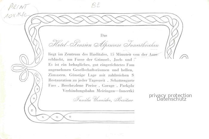 34144446 Innertkirchen Jnnertkirchen Oberhasli BE Hotel Pension Alpenrose postalisch nicht gelaufen Erhaltung siehe scans [WerneD78] KatCode: 11470060210584