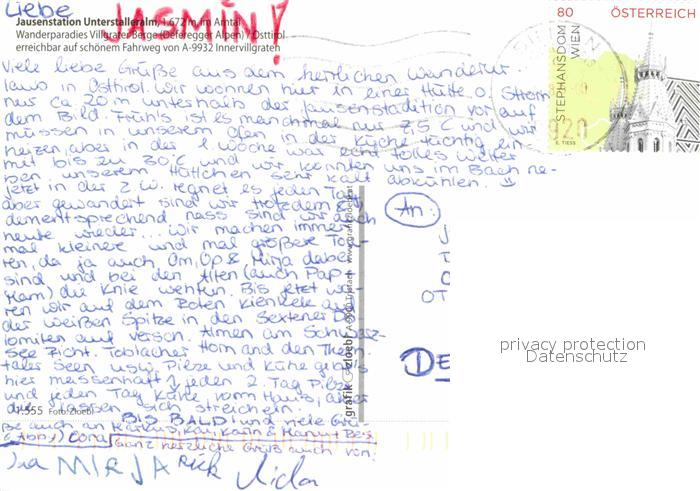 72771671 alte Postkarte Innervillgraten Jausenstation Unterstalleralm postalisch gelaufen Erhaltung siehe scans [WerneD78] KatCode: 11390333070710
