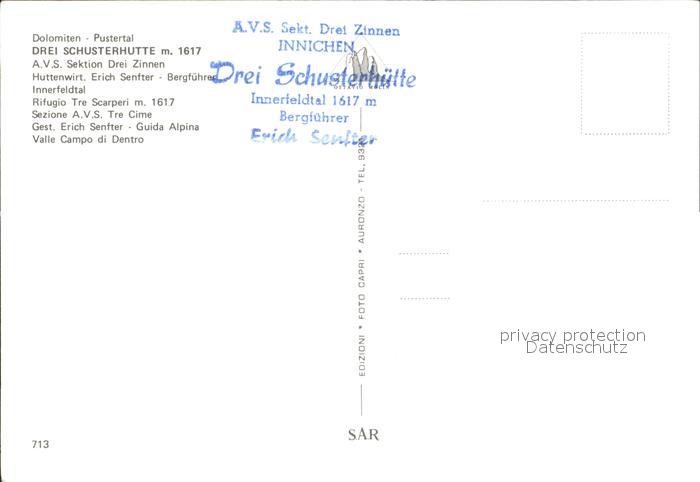 Innichen Suedtirol Drei Schusterhuette Dolomiten Pustertal postalisch nicht gelaufen Erhaltung siehe scans