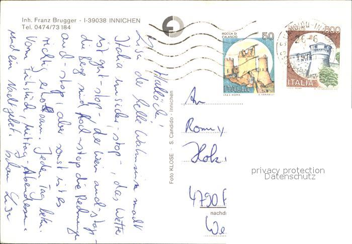 old postcard Innichen Suedtirol Landheim Brugger postalisch gelaufen Erhaltung siehe scans