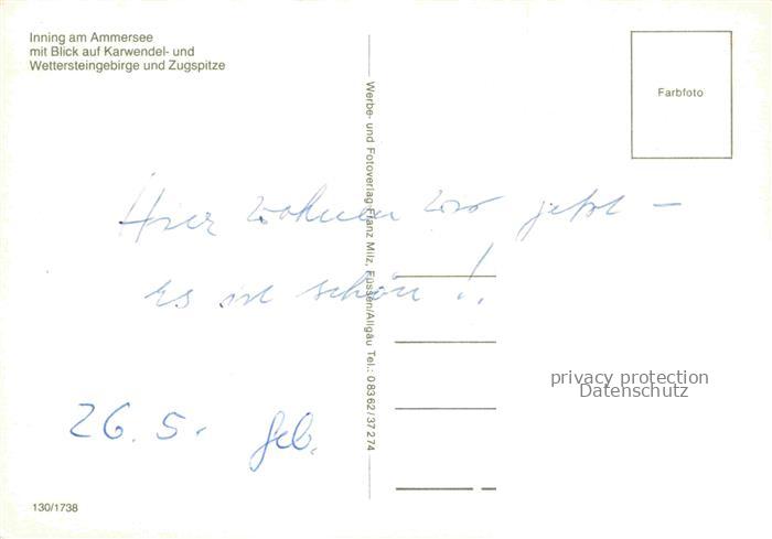 74034666 Inning Ammersee Panorama Blick auf Karwendelgebirge Wettersteingebirge Zugspitze postalisch nicht gelaufen Fliegeraufnahme Erhaltung siehe scans [FriedD77] KatCode: 11110009188126